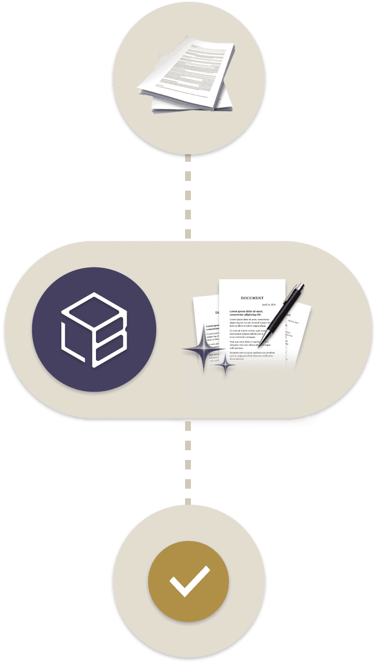 Från röriga PDF:er till färdiga stämningar, svaromål och yttranden, på några minuter.
